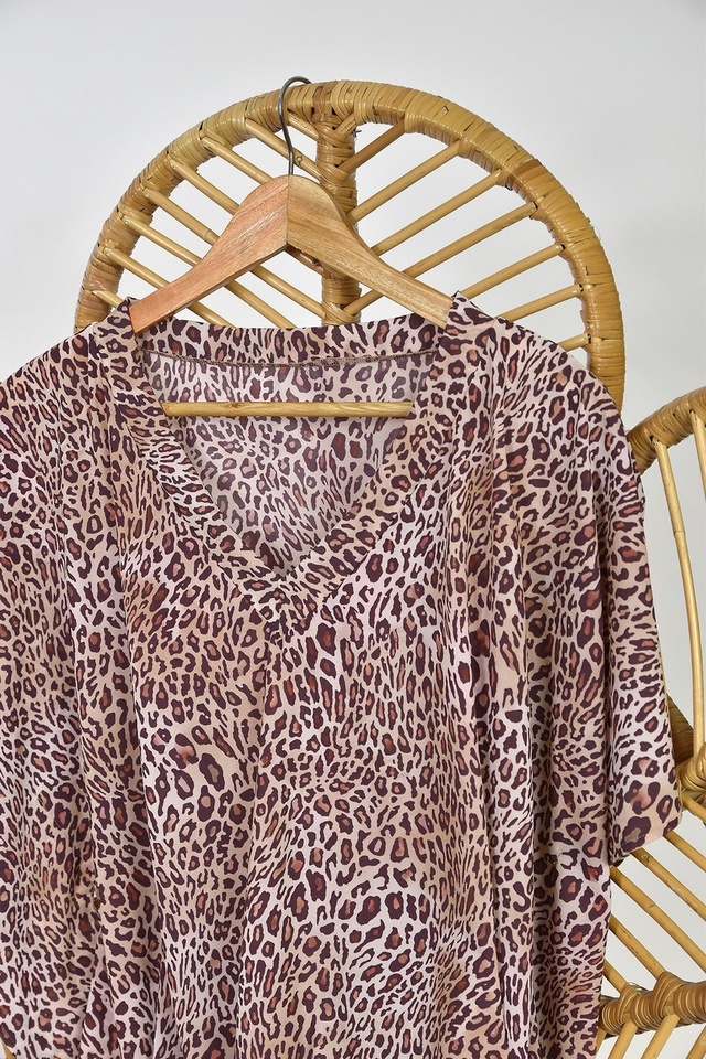 Pareo z delikatnego materiału w panterkowy print, wiązane na pasek w talii.